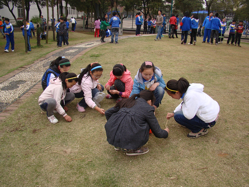 四年级和六年级的同学拿起了扫把、筷子和垃圾袋一起到师大校园内打扫卫生。墙角里,花丛中,一块又一块隐藏在暗处的垃圾被同学们消灭了。一节课的时间过去了,孩子们红扑扑的的小脸上渗出了汗珠,但谁也没有喊累叫停,大家认真的搜寻着,行动着,为保持美好的校园环境贡献着自己的力量。