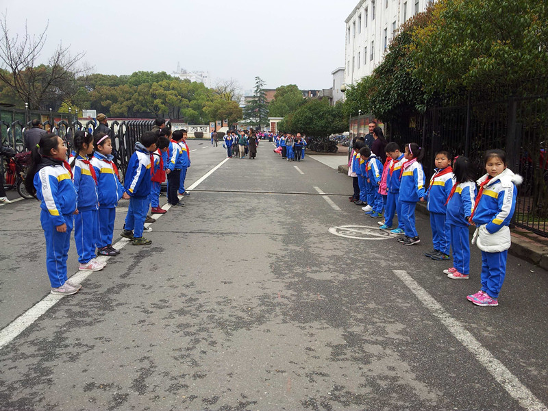 三年级的同学们拉起了小手,来到附中门口维持放学秩序。“请家长注意,一(5)班的队伍出来了!”“请您把电动车停在线外好吗?”“请您在黄线外等孩子可以吗?”“家长,请您不要拥挤。”一句句礼貌的提示语化解了家长心中的焦虑,一双双有力的小手为其他同学拦出了一条放学安全通道,老师、同学、家长们的脸上都露出了满意的微笑。