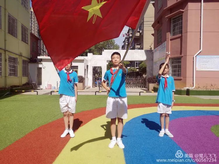 雄壮有力的出旗曲拉开了序幕;队员们齐唱《中国少年先锋队队歌》,孩子们的脸色变得少有的凝重,重大的使命感已经冉冉升起……在鲜艳的队旗下,新队员们稚嫩的童声,回荡在学校上空,宣告一个崭新的童年已经吹响号角……