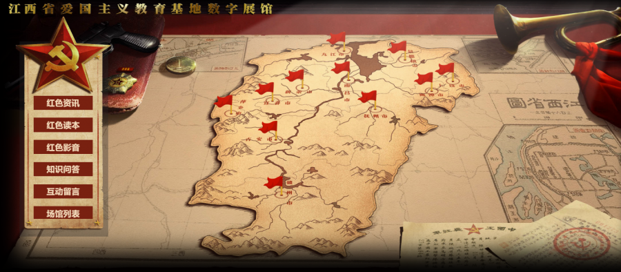 此次特殊的“寻访红色足迹”之旅,从一张红旗飘扬的江西省地图开始。