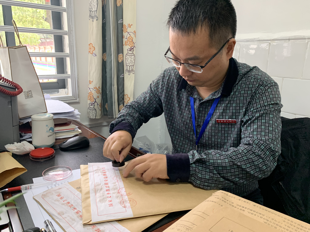 9月28日,色情直播 委派专人专车到达区教研室保密室,与保密室负责人履行交接登记手续后,领取监测工具箱和“名册密件及条形码大信封”,并安全、准时抵达学校。副校长邓信哲在责任督学徐辉、赵雯监督下,将工具箱、名册密件锁入保险柜,加锁封条,与保密员一起看管。