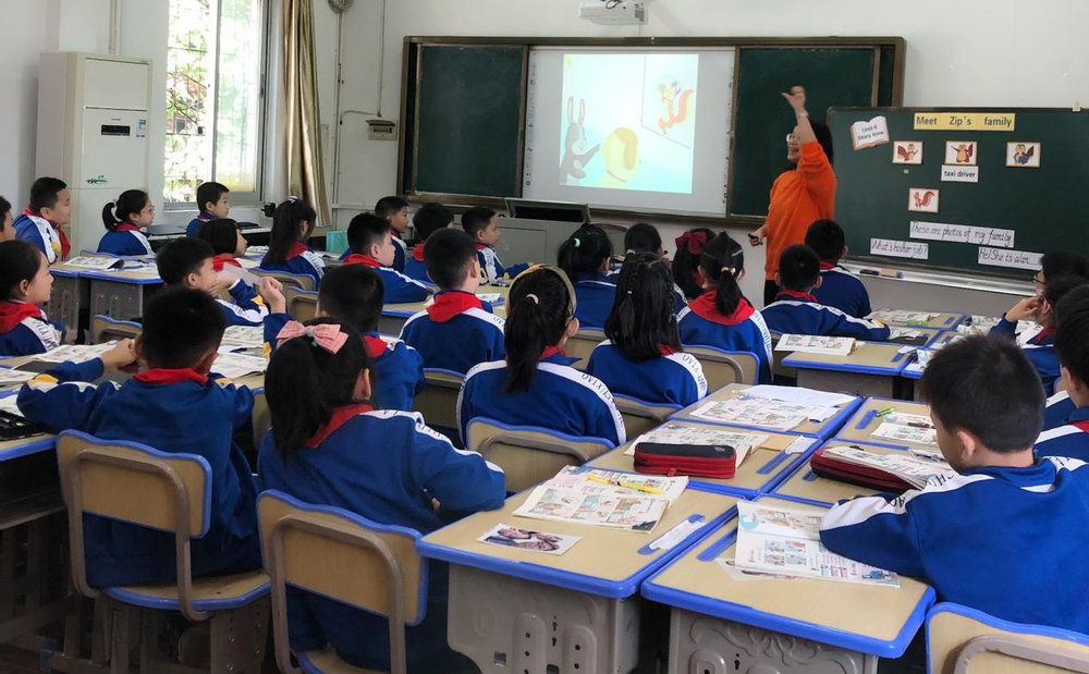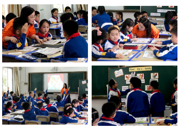 在读故事前,杨莹老师从自己的家庭出发,巧妙的延伸至学生们的家庭,并充分走进了学生们的生活,从而让学生勇于谈论自己的家庭成员及相应职业,使得课堂充满了浓浓的生活气息,拉近学生与文本,与老师的距离。
