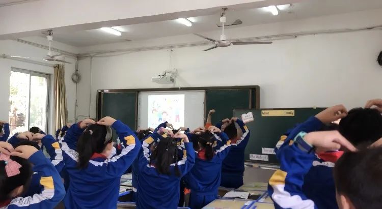 瞧!本次故事展示课以欢快的歌曲<My family>开场了,孩子们跟着杨老师的步伐开心的又唱又跳,乐在其中!