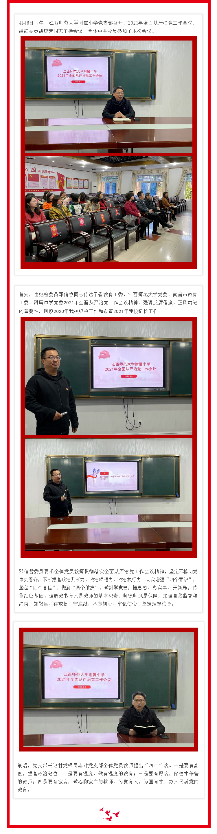 江西师大附小党支部召开2021年全面从严治党工作会议