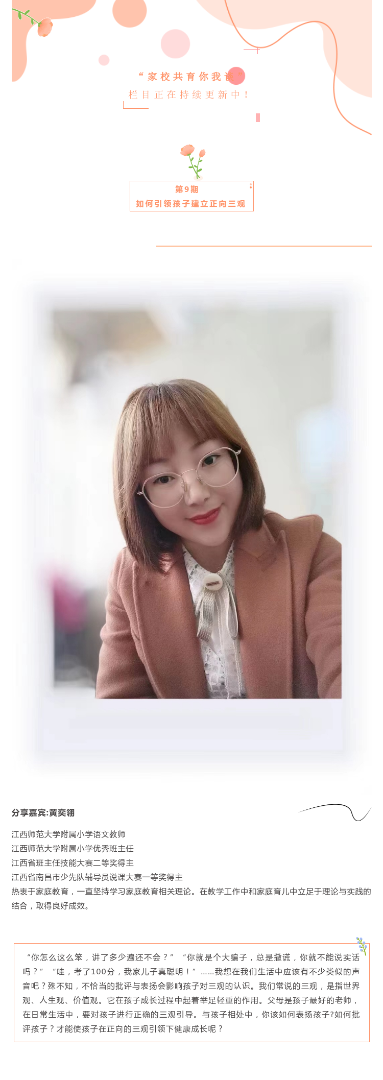 家校共育你我谈|如何引领孩子建立正向三观