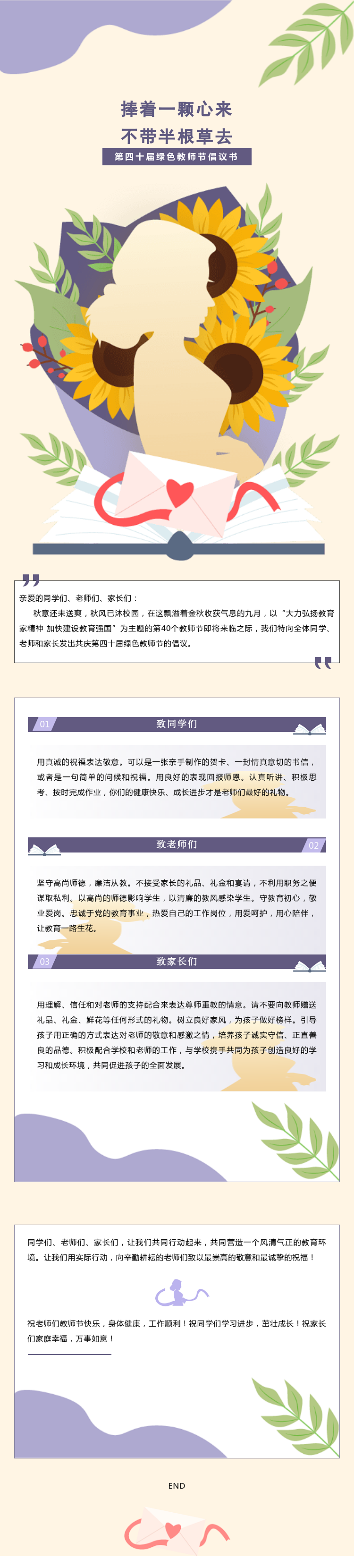 捧着一颗心来 不带半根草去〡第四十届绿色教师节倡议书