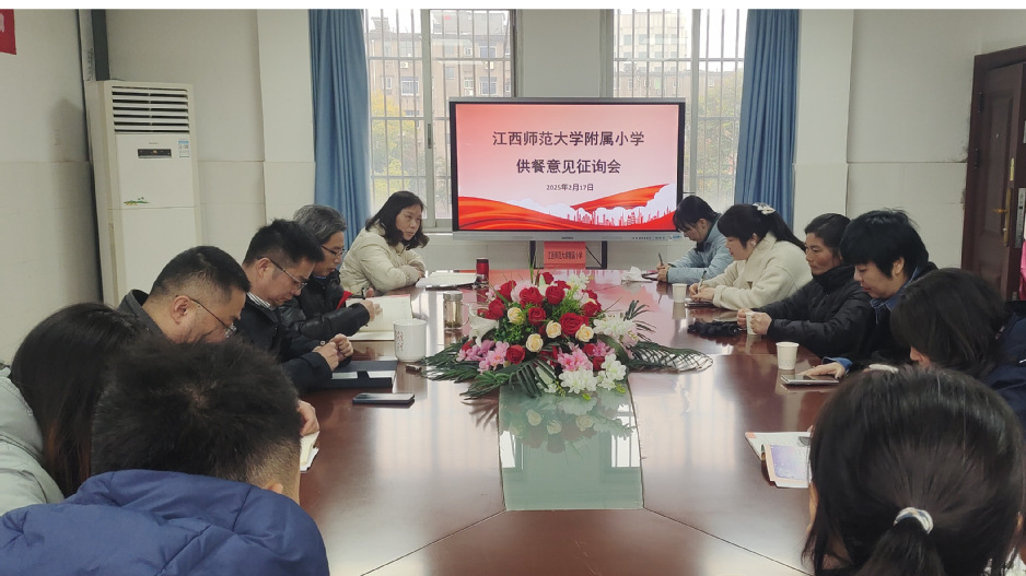 2025年2月17日,色情直播 召开新学期学生中餐意见征询会,出席会议的有党支部书记甘党根、校长钟事金和校务委员,校级家委会成员,配送餐公司负责人等。